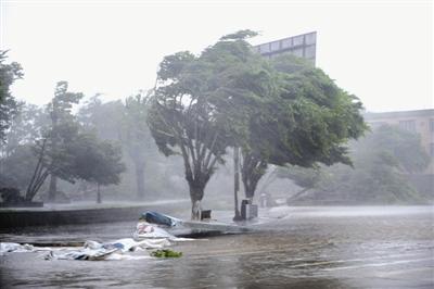 7月18日,超强台风“威马逊”即将登陆前,广东湛江徐闻县狂风大作。
