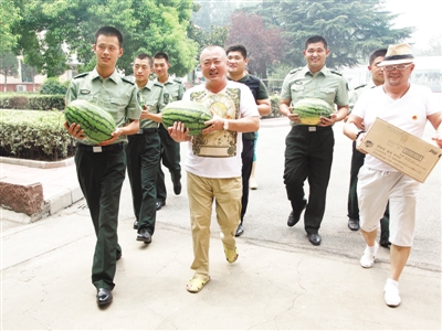 7月23日,枣庄市雷锋精神研究会带领含笑慈善团队,来到济南军区驻官桥72938部队,为这里的官兵送去西瓜、和防暑降温慰问品,给酷暑中的军营带去了一丝清凉,让人民子弟兵感受到浓浓的鱼水之情。