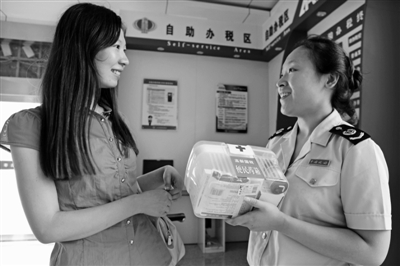 暑热天气中,枣庄高新区国税局立足便民为民,在办税服务厅设立“便民药箱”,免费向有需要的纳税人提供避暑药物,拉近了税企之间的距离,擦亮了真心服务品牌。 (张晶 张国超 摄)