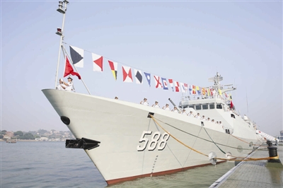 8月8日,海军新型护卫舰泉州舰入列命名授旗暨继承“海上猛虎艇”荣誉称号仪式在厦门某军港举行。这标志着第四代“海上猛虎艇”正式加入中国海军战斗序列。 (新华社发)