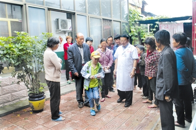 9月16日9点,滨湖镇田桥村的银屑病男孩邱文腾,在其亲戚和医院院长和医护人员的陪同下踏上了由济南返往滕州的路程。