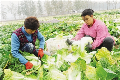 11月11日,榴园镇易园蔬菜种植合作社社员在收获娃娃菜。近年来,峄城区不断加大农村土地流转力度,积极引导经济能人、农民专业合作社发展家庭农场,目前全区已流转土地3万余亩,带动8000余名剩余劳力就业,实现了承租户与农户的双赢。 (孙启路 孙伟 摄)