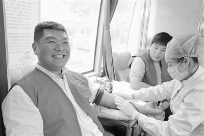 “希望尽自己的一点力量,帮助到需要帮助的人”面对记者的镜头,义工刘文涛爽快地说道。日前,枣矿集团新安煤业公司义工协会开展了主题为“献血光荣 珍爱生命”的爱心献血活动,40多名义工踊跃献血,其中29名符合条件的义工成功献血,献血量达11400毫升。 (记者 张晶 通讯员 彭宪玲 摄)