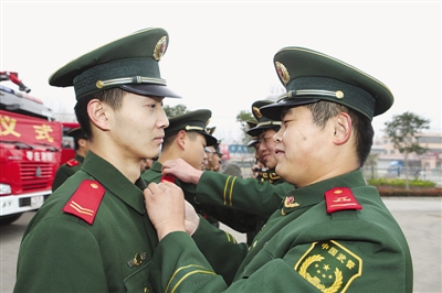 ← 12月1日,薛城区消防大队举行告别仪式,送别老兵离开军营。