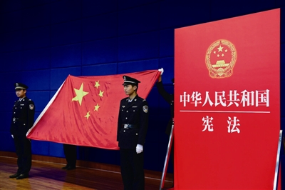 这是集体宣誓仪式现场(12月4日摄)。12月4日,山东省检察院工作人员举行集体宣誓仪式,迎接我国首个国家宪法日。 (新华社记者 郭绪雷 摄)
