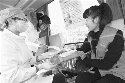 12月5日是第29个国际志愿者日。当日,薛城团区委组织志愿者开展了清理“城市牛皮癣”、义务献血、社区服务、维持交通秩序等丰富多彩的志愿服务活动,用实际行动弘扬“奉献、友爱、互助、进步”的志愿者精神。图为志愿者在献血。 (刘希成 王硕 摄)