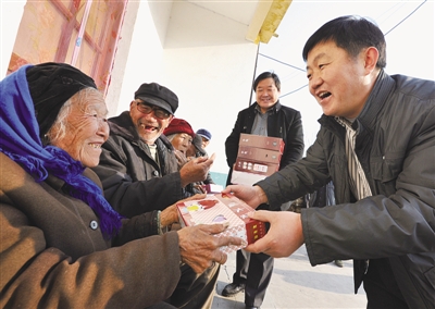 12月19日,徐庄镇计生办工作人员向敬老院老人赠送暖手宝。当日,山亭区开展“爱心献夕阳”活动,为徐庄镇敬老院的46位老人送去暖手宝、棉袜等保暖御寒物品,让孤寡老人们感受到社会大家庭的温暖。 (李宗宪 赵磊 摄)