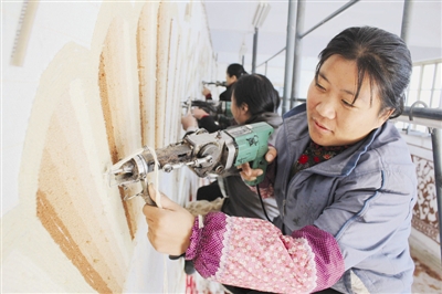 12月20日,凫城镇一名返乡务工人员在镇里的一家地毯公司加工地毯。近年来,山亭区积极为返乡务工人员提供各种就业服务,使他们能安心在家门口就业。目前,已有1000余名返乡务工人员在山亭区电子、服装、纺织、加工等企业就业。 (王启蒙 摄)