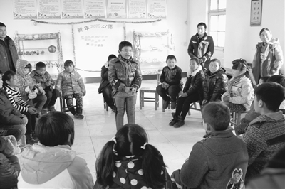 近日,国网枣庄供电公司的10余名“红石榴”志愿者来到市中区周村九年制学校看望留守儿童,给孩子们送上围巾、手套等御寒物品,陪他们共同庆祝新年。图为孩子在讲述新年愿望。