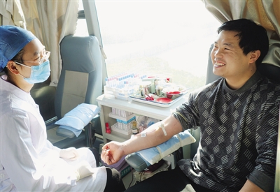 新年伊始,我市不少市民来到光明广场的采血车上无偿献血,通过公益活动献上自己的一份爱心,帮助更多需要帮助的人。 (张晶 彭宪玲 摄)