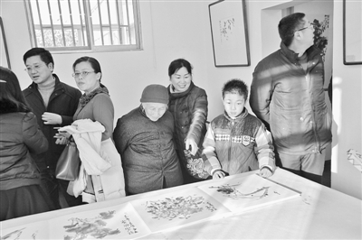 1月11日,徐剑平花鸟画展在市文联书画交流中心开展,展出的近百幅国画大写意作品均是他一年来的新作,作品题材多样,笔墨酣畅淋漓,吸引了众多参观者。 (记者 王飞龙 摄)