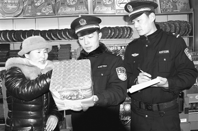 春节临近,市公安局山亭分局狠抓安全防范工作不放松,组织民警对涉爆的生产、销售、储存、运输单位和业主开展安全教育和检查,从源头消除安全隐患,为市民度过安乐祥和的节日营造良好环境。图为日前,公安民警到烟花爆竹销售网点进行安全检查。 (刘品 张雷 摄)