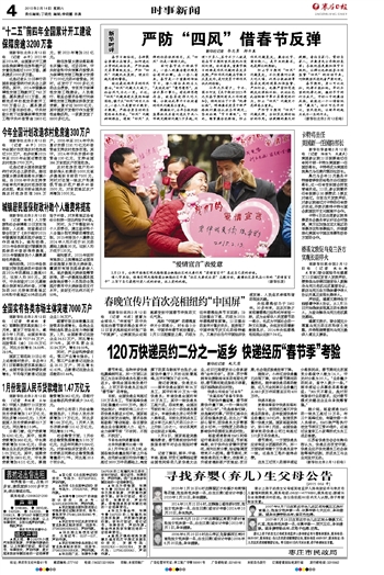 120万快递员约二分之一返乡 快递经历“春节季”考验