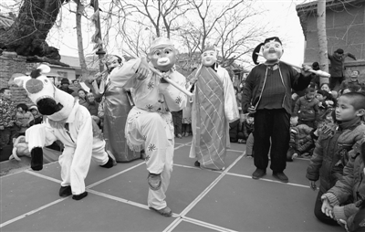 春节期间,市中区齐村镇柏山村农民自搭舞台,拿出各自的“绝技”,表演“斗羊”、舞龙狮、划旱船、踩高跷等传统民俗节目,吸引了大批群众驻足。 (孙扬 摄)
