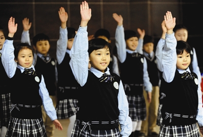 ➝开学首日,安全先行。3月2日,在沈阳市南京一校“开学第一课”上,学生们表演自编舞蹈《我是交通安全文明小标兵》。 (新华社发)
