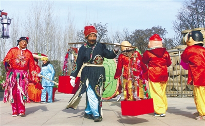 3月4日是正月十四,在中国马铃薯之乡——全国文明乡镇滕州市界河镇,村民正在表演竹马。据了解,为庆贺元宵节,村民们进行了精彩纷呈的民俗表演,为乡村增添热烈的节日氛围。 (记者 侯志龙 摄)