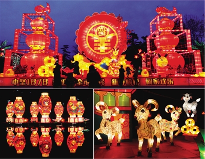 3月2日,游人在公园欣赏花灯。随着元宵节的到来,市人民公园展出的各类异彩纷呈的羊年花灯吸引着游人。据悉,这些花灯70%的用材是公园把往年花灯会展出的大型组灯骨架进行拼接改造、复新,让其“变脸”成时令花灯,焕发出夺目光彩,供游人欣赏。