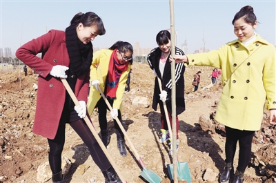 3月10日,市妇联在市中区宋岭植树点开展了“植百年巾帼树 造家庭幸福林”绿色植树活动,各级巾帼文明岗的妇女170余人参加了活动,共植树600余棵。 (记者 刘品 摄)