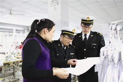 为了帮助我市企业做好“洋买卖”,去年以来,青岛海关驻枣庄办事处积极推行协调员制度、深化通关无纸化改革、发挥特殊监管场所“内陆港”作用,有效提升通关效率,为企业营造优质外贸营商环境。图为海关关员深入加工贸易企业了解产品制作流程,并提出规范管理建议。 (王菲 郜振民 摄)
