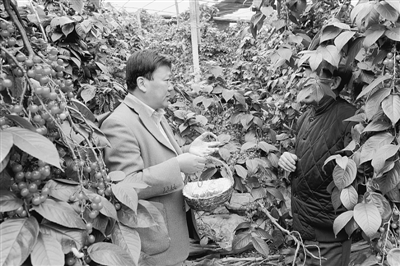 市旅服局派驻山亭区北庄镇北庄村“第一书记”刘文义在深入调研的基础上,带领村民发展大棚樱桃。经过近三年的努力,发展大棚樱桃千余亩,人均增收5000余元。同时积极推动采摘节,实现了“以农促旅,以旅带农”的发展模式。图为刘文义向村民了解大棚樱桃种植情况。 (记者 刘品 摄)