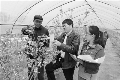 ←进入4月以来,我市出现“倒春寒”。为更准确提供气象服务,4月15日,薛城区气象局技术人员携带气象观测设备走进田间地头、种植大棚,进行现场观测,调查了解气温频繁变化对农作物的影响。 (张雯馨 摄)