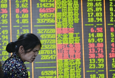 5月5日,股民在杭州一证券交易厅里关注股市行情。