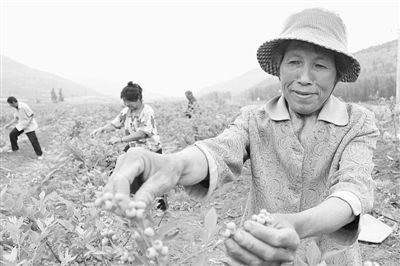 6月1日,山亭区留守妇女在种植专业合作社给蓝莓疏果。近年来,山亭区通过发展农业合作社实行“土地+合作社+订单”的模式流转土地,目前已发展农业专业合作社34家,吸引当地剩余劳动力6000余人就业,成为当地农民增收致富的新模式。 (王飞龙 王启蒙 摄)