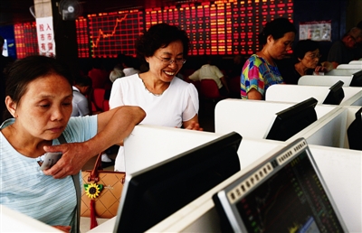 7月9日,在西安一家证券交易所里,股民们在查看股票信息。当日,沪指大涨5.76%,站上3700点。截至收盘,上证综指报收于3709.33点,涨5.76%;深证成指报收于11510.34点,涨4.25%。 (新华社发)