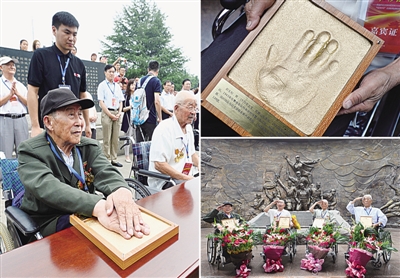 7月10日,“共同铭记”纪念世界反法西斯战争胜利70周年“老兵手印”系列活动启动仪式在台儿庄大战纪念馆举行。海峡两岸和欧亚两洲的二战老兵、老兵后人、抗战历史的传承人、守护人,以及专家学者、少先队员等200余人参加。