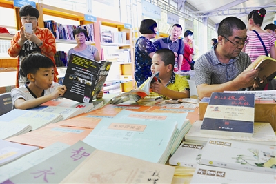 7月16日,第五届江苏书展在徐州市拉开帷幕。本届书展主题为“阅读,让社会更文明”。共有500多家出版发行单位参展,参展图书15万余种,同时还举办近500项阅读推广活动。图为阅读爱好者正在书展主题阅读馆内阅读。