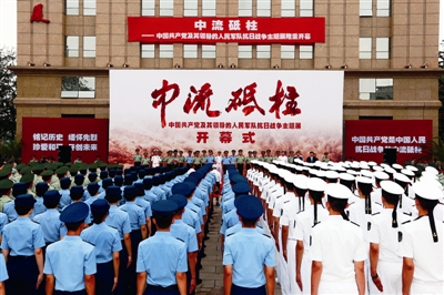 7月16日,由总政治部主办的《中流砥柱——中国共产党及其领导的人民军队抗日战争主题展》在北京开展。 (新华社发)