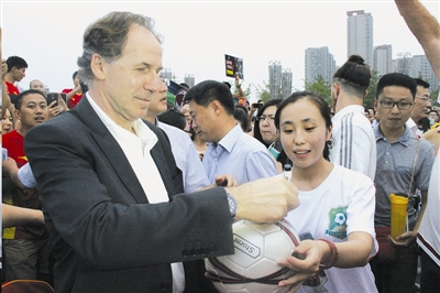 据悉,该活动由青岛银行总行主办、青岛银行枣庄分行承办、市中区政府和滕州市体育局协办。图为巴雷西为球迷签名。