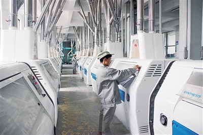 8月4日,在位于洪绪镇的新东谷面粉有限公司,机声隆隆,工人们顶着高温正在加紧生产。据了解,该公司投资1.8亿元,引进意大利先进生产线,分两期建设了年产30万吨的面粉项目。现在一期工程已投产,日处理小麦达500吨,产出面粉380吨,产品销往全国各地,是枣庄地区最大的集科研、优质麦种植、仓储、面粉加工、物流、销售为一体的省级农业产业化龙头企业,为加快现代农业发展注入了持续的后劲动力。 (记者 金亮 通讯员 单智慧 摄)