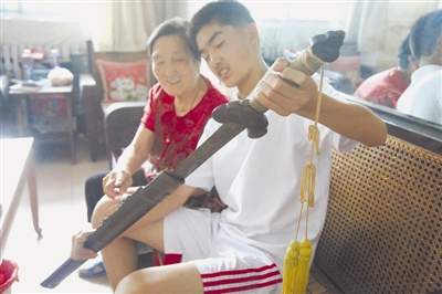 “……就在炸药即将爆炸的一瞬,你姥爷和他的战友跳下了高高的碉楼,他们的身影几乎同碎石同时落地,你姥爷有幸脱险,而他的战友却不幸牺牲了……”张芳玲老人含泪向外孙及学生们讲述着丈夫当年抗战的故事。