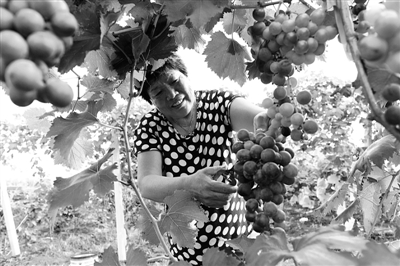 8月12日,光明路街道东山阴村果农在葡萄园里采摘葡萄。近年来,市中区立足城区优势,进一步引导农民发展水果、蔬菜、食用菌等特色农业,既丰富了城乡居民的菜篮子,又促进了农民增收致富。 (实习生 孙杨 摄)