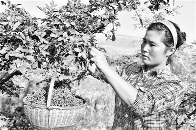 8月23日,水泉镇杨庄村妇女在摘花椒。处暑时节,“鲁南果乡”山亭区农民趁晴好天气收获苹果、花椒等特色林果,山乡果园到处是一派繁忙的收获场景。 (刘明祥 摄)
