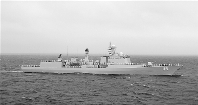 8月28日,在俄罗斯彼得大帝湾,中国海军115舰在联合海上阅兵中接受检阅。