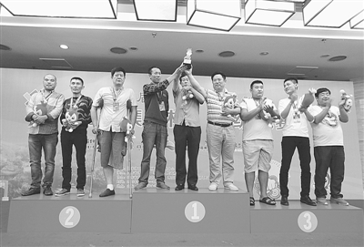 9月20日,第三届全国智力运动会够级比赛(六副)结束,薛城区队喜获冠军。图为获奖代表队举杯庆贺。 (甄宗奎 摄)