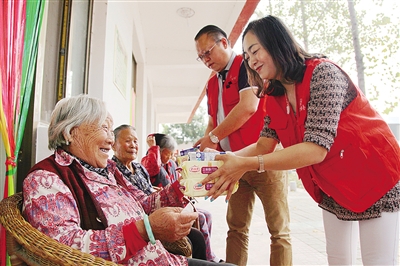 9月19日,滕州市爱心人士张芹、何亚娟、马东为羊庄镇敬老院的老人送来月饼、牛奶、食用油等物品,并祝老人们过一个欢乐祥和的中秋佳节。据悉,他们连日来先后为界河镇敬老院、滕州市荣军院的老人及10余名特困儿童送去月饼、牛奶、食用油等物品。 (通讯员 张厚祯 摄)