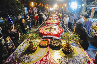 百米长宴邀明月 千年古镇迎中秋
