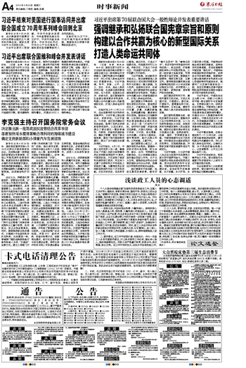 习近平结束对美国进行国事访问并出席 联合国成立70周年系列峰会回到北京