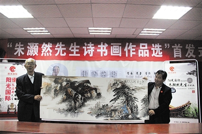 10月18日,由滕州市委宣传部、市总工会、市文联主办的滕州艺坛巨匠朱灏然先生诗书画首发式在滕州古玩城举行。滕州市人大副主任、总工会主席姜繁茂、市政协副主席、工商联主席杜孝玺出席了首发式。 (记者 金亮 摄)