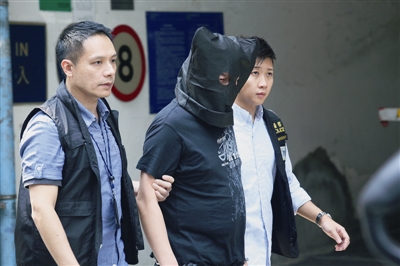 10月21日,警员带领一名疑犯到香港红磡案发现场重组案情。10月19日,一名到香港旅行的内地男游客疑因购物问题,被殴至重伤,于20日死亡。香港警方21日上午带其中一名疑犯,到红磡案发现场了解案情。香港警方已拘捕4人,由重案组接手调查。 (新华社记者 吕小炜 摄)