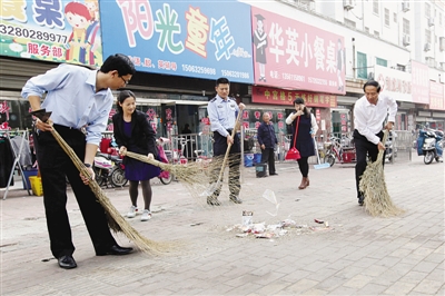 10月23日,干警在鑫昌路清扫街道卫生。连日来,市中区人民法院开展“共创美好家园”活动,全体干警利用双休日或休息时间走向街头,拿起清扫工具,与环卫工人一起清扫街道,维护卫生环境,共创美好家园。 (记者 张晶 通讯员 种法亮 摄)