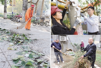 连日来,我市组织机关工作人员、党员干部、群众走上街头、走进社区开展卫生大清扫志愿服务活动,并对路面上的小广告进行清理,使城区卫生面貌有了较大改观,掀起了创建国家卫生城市高潮。 (记者 张晶 摄)
