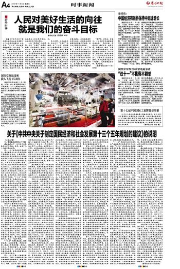 关于《中共中央关于制定国民经济和社会发展第十三个五年规划的建议》的说明