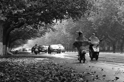 11月5日,人们冒雨在山东省青州市街头出行。当日,山东省自南向北出现一次明显降雨天气过程。此轮大范围降雨,将有效缓解当地旱情,有利于增加蓄水、涵养地下水源。 (新华社发)