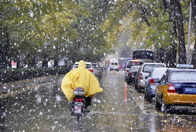11月6日,北京市民冒雪出行。当日,我国中东部大部分地区迎来雨雪天气。其中,华北北部、东北地区南部、内蒙古中东部有小到中雪,局地大雪;黄淮、江淮、江汉、江南大部等地区迎来降雨。 (新华社发)