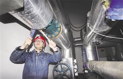 11月11日,为确保供暖设备系统可靠性,保证按时供暖。滕州市新源热力公司工作人员正在杏坛东西区换热站检查维护供暖设备。据了解,滕州南、北线近240个居民小区使用集中供暖,覆盖面积近1000万平方米。 (特约记者 侯志龙 通讯员 吴栩聪 摄)