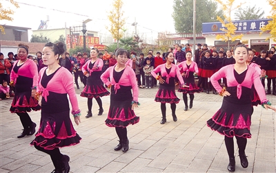 11月17日,大坞镇的农民正在跳广场舞。据了解,该镇自7月份以来就开始筹备广场舞大赛,聘请20余名广场舞教师进行培训,当日,以办事处为单位进行选拔,全镇共65支队伍、2000余村民参加了预赛选拔,评出16支队伍进入决赛,通过比赛,充分展示了农民的精神风貌。 (特约记者 侯志龙 摄)